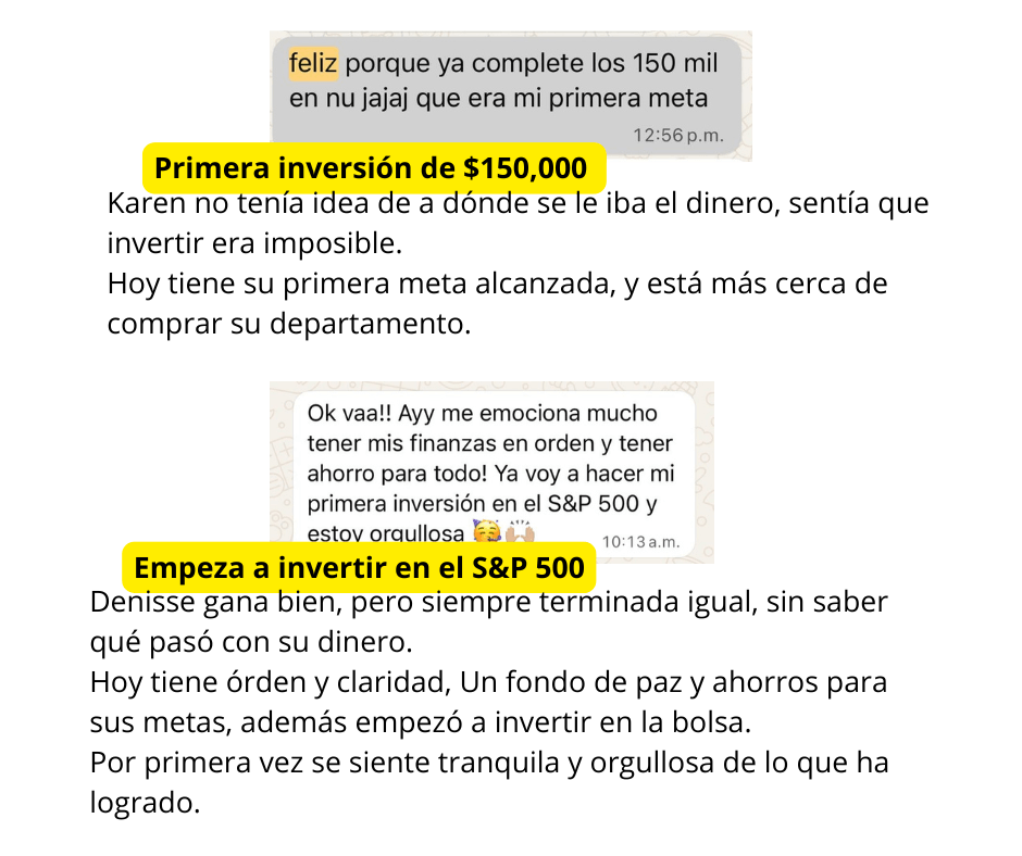 El sistema te ayuda a crear tu base (ahorro, fondo de paz y control), y solo cuando estés lista/o, entender cómo dar pasos informados, sin presión ni riesgos innecesarios.